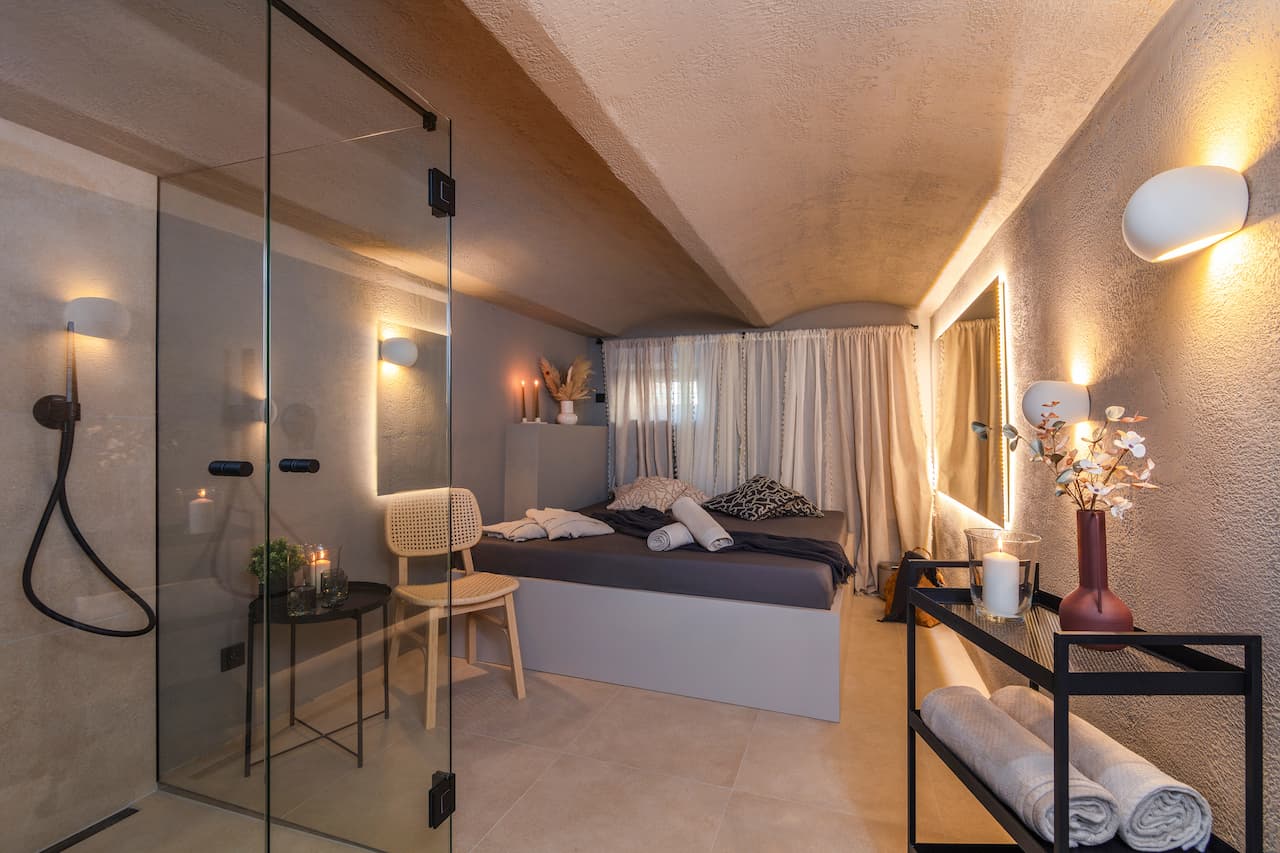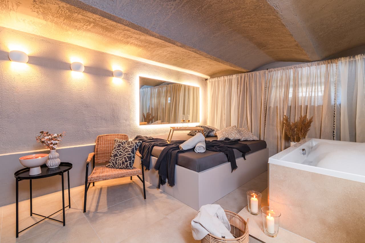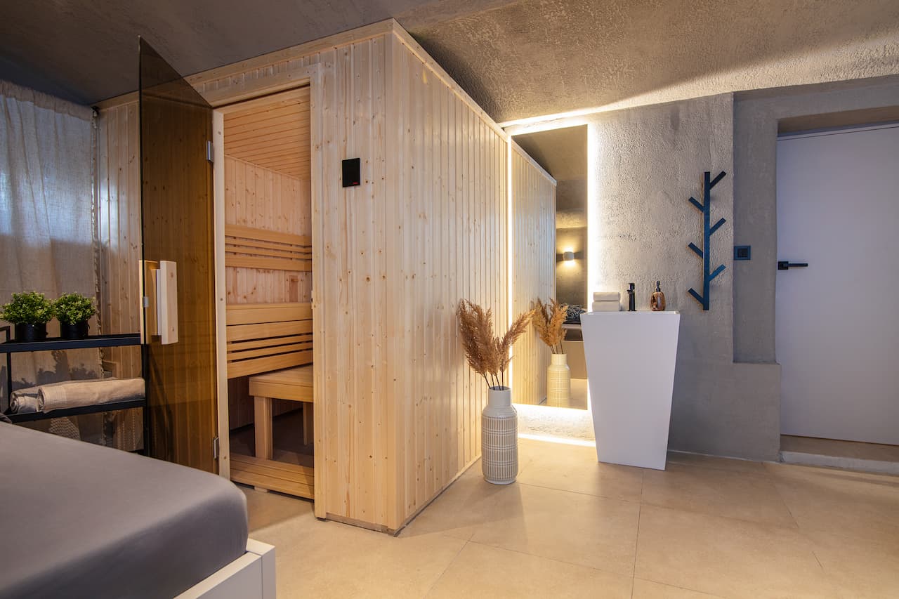 Nové soukromé SPA je vybaveno prostornou sprchou, finskou saunou, hydromasážní vanou a velkou postelí pro váš odpočinek. Součástí je také hudba dle vašeho přání, a především naprosté soukromí.